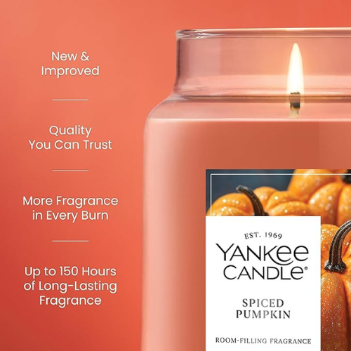 Yankee Candle Spiced Pumpkin – 22oz Large Jar, Fall Scented, 150-Hour Burn