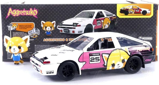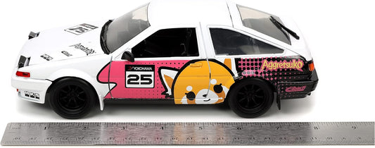Jada Toys Sanrio 1:24 1986 Toyota Trueno Die-Cast Car & Aggretsuko Figure