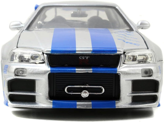 Jada Toys Fast & Furious Brian’s 2002 Nissan Skyline R34 Die-Cast Car – 1:24 Scale, Silver & Blue