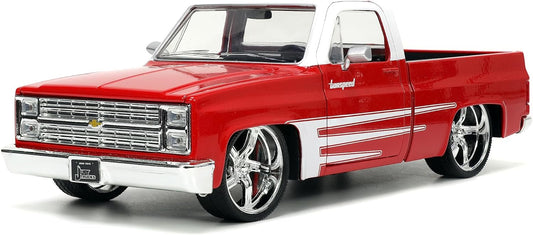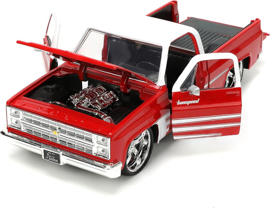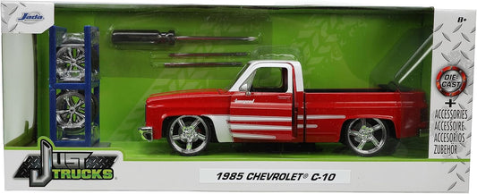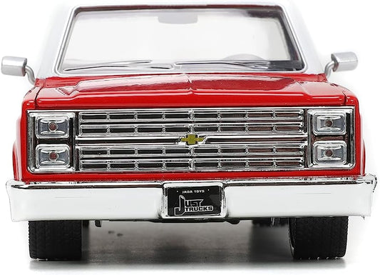 Just Trucks 1:24 1985 Chevy C10 Die-Cast Truck w/Tire Rack – Red/White