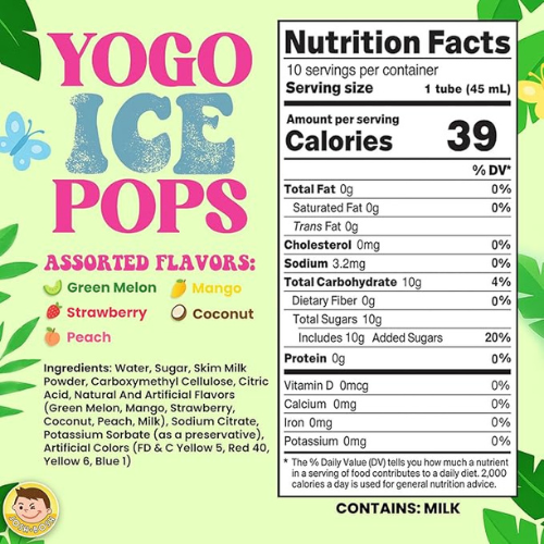 JOSH BOSH Yogo Ice Pops – 6-Pack (60 Tubes), Fat-Free Yogurt Snacks