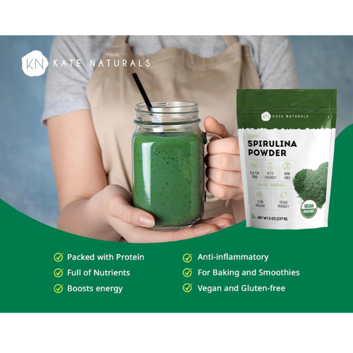 Kate Naturals Organic Spirulina Powder – 8 oz USDA Certified