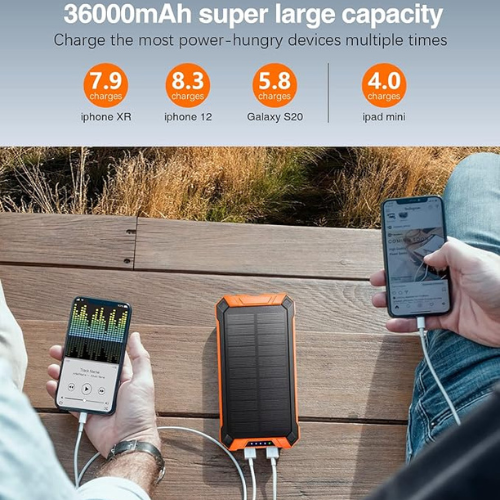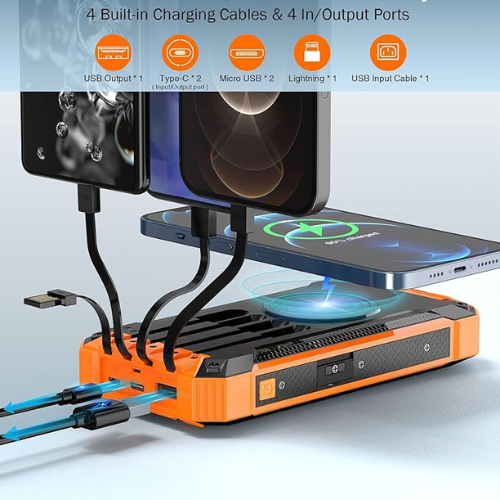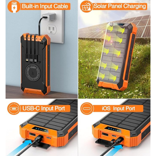 GOODaaa 36000mAh Solar Power Bank – Wireless + Wired Charging (Built-in Cables)