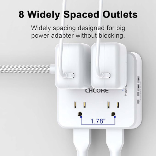 CHCORE Surge Protector Power Strip – 8 Outlets, 4 USB, 5Ft Cord