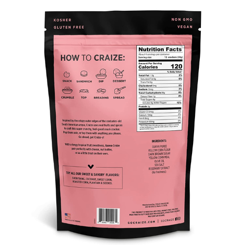 Craize Guava Crisps Gluten Free , Vegan , Kosher , Toasted Corn Crackers 4oz