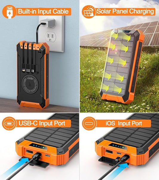GOODaaa 36000mAh Solar Power Bank – 15W Wireless Charger, 6 Outputs, Dual Flashlights
