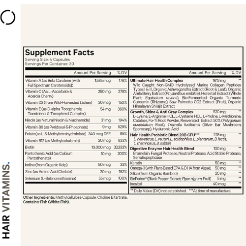 High-Potency Biotin (10,000mcg) – Supports hair strength, growth, and resilience, helping reduce shedding.