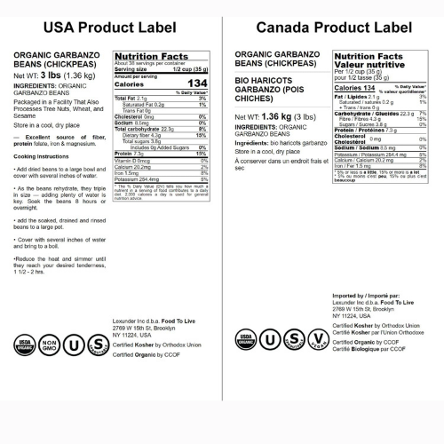 Enjoy the versatility and nutrition of Food to Live Organic Garbanzo Beans, a powerhouse ingredient packed with plant-based protein, fiber, iron, and folate. These organic, non-GMO, kosher, and sproutable dried chickpeas offer a delicious nutty flavor and make an excellent addition to countless dishes.
