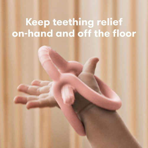 The Frida Baby Get A Grip Silicone Teether is designed to make teething easier for babies while giving parents peace of mind. Its wearable , easy to hold design keeps it in little hands and off the floor , while multiple shapes and textures provide soothing relief for both front teeth and molars. Made from 100% food grade silicone. This teether is completely safe , BPA free , PVC free and easy to clean , making it a reliable choice for everyday use.