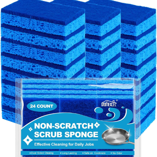 Make dishwashing and household cleaning easier with HOMEXCEL Kitchen Sponges. This 24 pack of durable , dual sided cleaning sponges features a soft non scratch side for gentle cleaning and a tough scrub side for removing stubborn grease and grime. Safe for non stick cookware , glassware , countertops , sinks and bathroom surfaces. These sponges deliver powerful cleaning without damage.