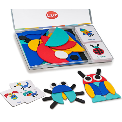 The LiKee Wooden Shape Puzzles set is a fun and educational toy designed to enhance your child’s creativity , problem solving skills and hand eye coordination. It comes with 36 colorful wooden blocks and 60 pattern cards that encourage kids to create shapes , animals and objects while developing cognitive and fine motor skills perfect for toddlers , preschoolers and early learners. This Montessori-inspired toy also doubles as a travel friendly activity and interactive family board game for kids aged 3 to 8 years.