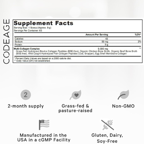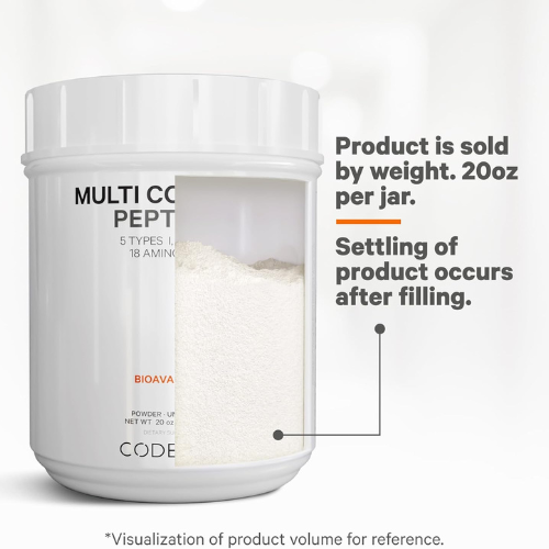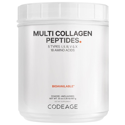 Codeage Multi Collagen Protein Powder is a premium all-in-one collagen supplement, featuring 5 types of collagen peptides sourced from grass-fed beef, free-range chicken, wild-caught fish, and eggshell collagen to support hair, skin, nails, joints, and gut health.