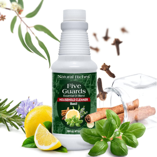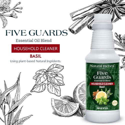 Keep your home fresh , clean and safe with Natural Riches Household Cleaner Concentrate. Infused with the Five Guards Essential Oil Blend inspired by the legendary tales of French thieves. This powerful formula combines basil and other natural botanical oils to deliver deep cleaning and refreshing fragrance. Perfect for use on kitchen counters , bathrooms , floors and other hard surfaces. It’s designed to cut through grease , grime and dirt while leaving behind a pleasant herbal scent.