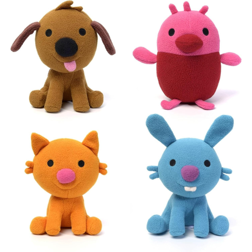 This Sago Mini Plush Gift Pack includes four 6.5 inch plush animals Harvey the Dog , Jinja the Cat , Robin the Bird and Jack the Rabbit , each plush is soft , huggable and perfect for kids’ pretend play. The gift box even transforms into a cardboard playhouse , encouraging storytelling and imaginative adventures.