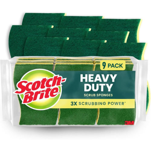 Tackle your toughest cleaning jobs with Scotch Brite Heavy Duty Scrub Sponges designed for durability and strength. These sponges last 3X longer than leading competitors and are perfect for scrubbing baked on messes , grease and grime. Ideal for cast iron skillets , stainless steel pots , pans , ovens and outdoor grills. These flexible sponges deliver powerful cleaning without falling apart.