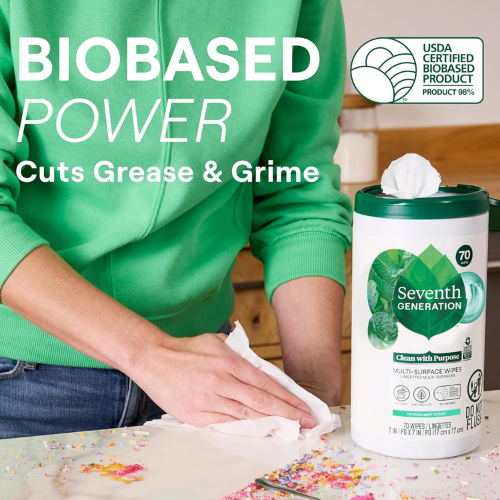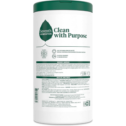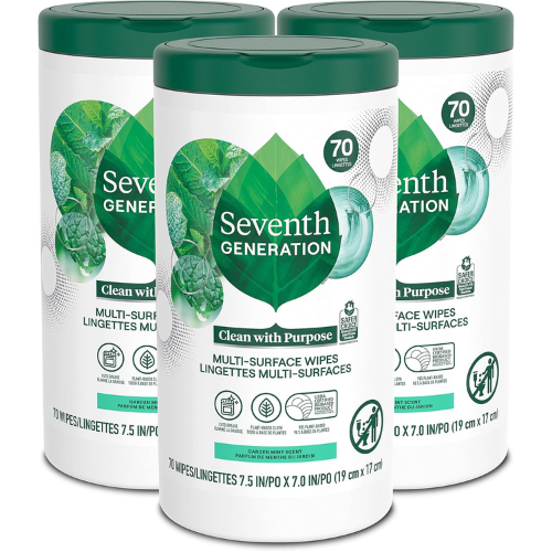 Clean with confidence using Seventh Generation Multi Purpose Wipes made with botanical ingredients and 100% essential oils for a safer , fresher clean. These wipes are free from harsh chemicals , dyes and synthetic fragrances, making them perfect for families and eco conscious households with a refreshing Garden Mint scent. They easily tackle dirt , grease and messes on a variety of hard , non porous surfaces in your home.