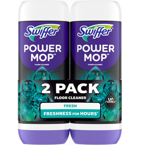 Swiffer PowerMop Floor Cleaning Solution Refills (2-pack , 25.3 fl oz each) feature a pre-mixed formula that tackles tough , sticky messes and dries quickly with no rinsing needed. Infused with Unstopables Fresh Scent. It leaves floors smelling vibrant and fresh for hours and is safe for most sealed hard surfaces.