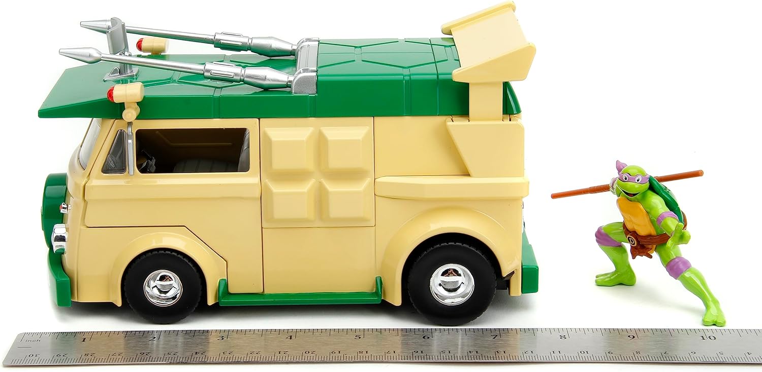 Join the fight against crime with the Teenage Mutant Ninja Turtles 1:24 Party Wagon Die-Cast Car & 2.75" Donatello Figure by Jada Toys. This highly detailed die-cast replica brings the TMNT’s iconic Party Wagon to life, featuring authentic details, rolling wheels, and an opening cockpit. The set includes a 2.75" Donatello figure, ready to gear up and take on any foes. Whether displayed or used for play, this officially licensed collectible is perfect for TMNT fans and collectors alike.